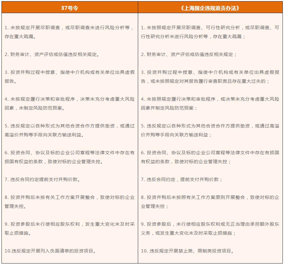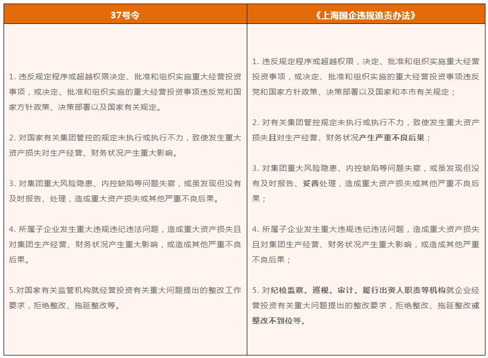 《上海国企违规追责办法》相较于37号令的变化,具体如下表: