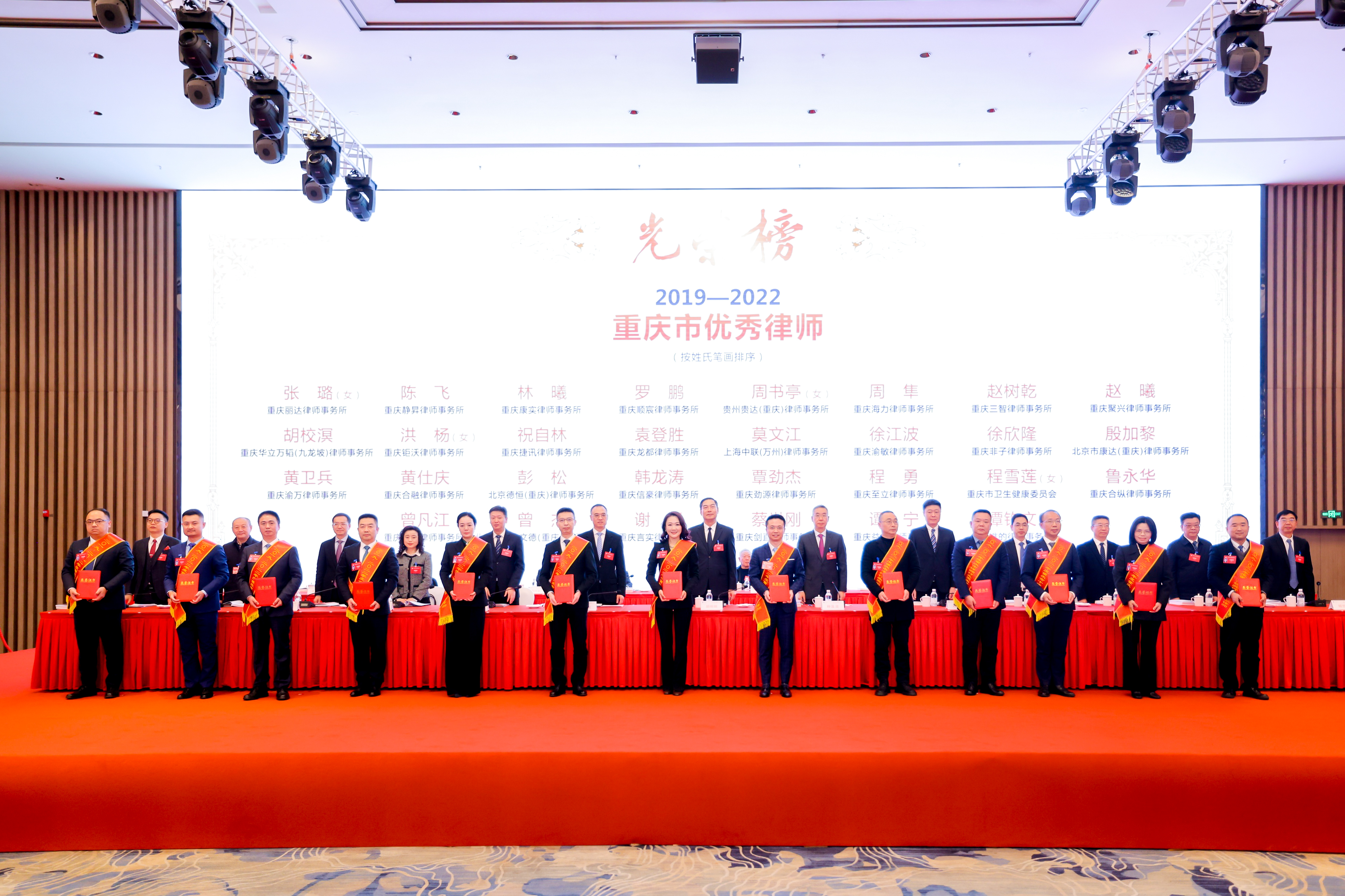 2023年12月18-19日,重庆市律师协会第八次律师代表大会在金科大酒店顺利召开。会议期间,大会举行了“2019-2022年度重庆市十佳律师”颁奖仪式,合伙人杨青荣获该奖。